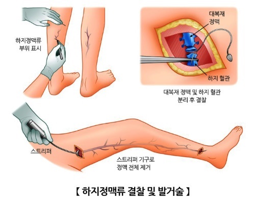 하지정맥류 증상이 심한 경우, 하지정맥 치료방법으로는 하지정맥류 병원에서 하지정맥류 수술로 하지정맥류 통증을 낫게 할 수 있습니다. 하지정맥류 수술방법은 환자 상태에 따라 다른데 가장 보편적인 하지정맥류 수술방법은 하지정맥 레이저를 사용해 복제 정맥 안의 복지 정맥 역류를 차단하고, 외부로 보이는 정맥류를 제거하는 방법입니다.