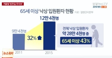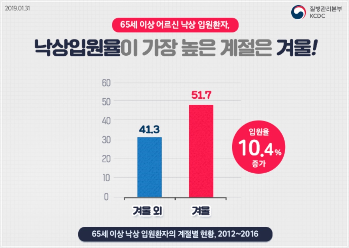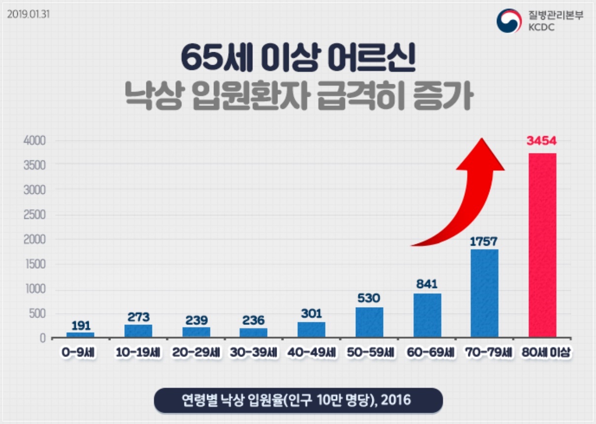 영하의 날씨가 이어지는 가운데 도로 결빙으로 인한 낙상사고에 주의가 필요합니다. 겨울철이면 빙판길 낙상사고가 빈번하게 발생하는데 젊은 사람들은 넘어져도 찰과상으로 끝날 수 있지만 하체 근력이나 평형 유지 기능이 약해져 있는 노년층은 큰 부상으로 이어지기 쉽습니다. 또한 경미한 부상이 고관절 골절이나 척추압박골절로 이어질 수 있어 각별한 주의가 필요합니다.