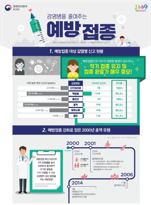 초등학교 입학생을 대상으로 예방접종 기록을 확인하기 시작한 건 2001년부터입니다. 당시 홍역이 대규모로 집단 유행하면서 사회적으로 이슈가 되면서 홍역 예방접종률을 95%로 유지하기 위해 초등학생의 홍역(MMR) 2차 접종 여부를 확인했습니다. 지난 2012년에는 DTaP, IPV, MMR, 일본뇌염 등 4종으로 그 대상이 늘었습니다.