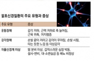 자율신경계에까지 손상이 온 경우에는 걷기가 힘들고, 손발에 땀이 나지 않고, 밝은 곳에서 눈이 부시거나 어지러운 증상이 동반될 수 있습니다. 당뇨합병증으로 오는 말초신경병에 걸리면, 저리는 증상이 다리에서 시작해 양팔로 옮겨갑니다. 같은 말초신경병이더라도 환자에 따라 증상이 달리 나타날 수 있어서 의사의 진찰과 함께 전기 진단검사를 받아보는 게 좋습니다.