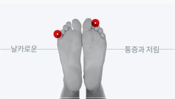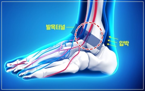 발이 저리면 ‘발목터널증후군’일 수 있습니다. 복숭아뼈 뒤쪽에 있는 신경 통로가 눌려 발생하는데, 발바닥 안쪽과 복숭아뼈 주변, 엄지발가락이 모두 저립니다. 혈액순환 장애로 인한 손발 저림은 일시적이며, 자세를 바르게 하면 곧 사라집니다. 손발 끝이 차갑고 창백해지는 것도 특징입니다. 반면 손·발목터널증후군일 때는 저린 증상이 거의 동일한 부위에 반복적으로 발생합니다.