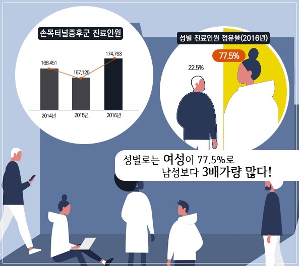 손·발목터널증후군은 제대 치료하지 않으면 신경을 압박하는 인대·힘줄 일부를 제거하는 수술이 필요할 수 있습니다. 일찍 발견해야 소염제 등의 약물과 스테로이드 주사로 비교적 간단히 치료 가능합니다.하지만 몸 이곳저곳이 저리고, 증상이 좌우 대칭으로 나타나면 ‘말초신경병증’일 수 있습니다. 말초신경병증은 신경 전체에 염증이 생긴 질환으로, 당뇨병 환자에게 주로 생깁니다.