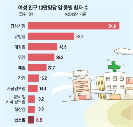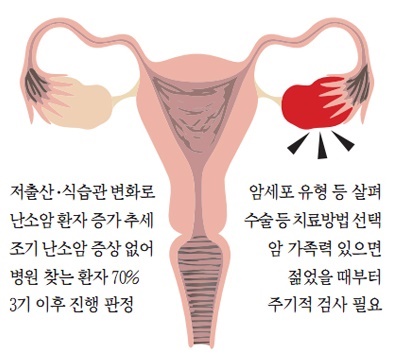 난소암은 여성이 앓는 암 중에 발병률 8위에 해당하지만, 사망률로는 1위인 치명적인 암입니다. 초기에 발견하면 5년 생존율이 90%를 넘지만, 대부분 3기 이후에 발견돼 전체 생존율은 61.9%에 그칩니다. 그래서 여성은 1년에 한 번씩 부인암 검진을 받는 것이 좋습니다. 오늘은 난소암의 증상과 치료에 대해 알아보겠습니다.