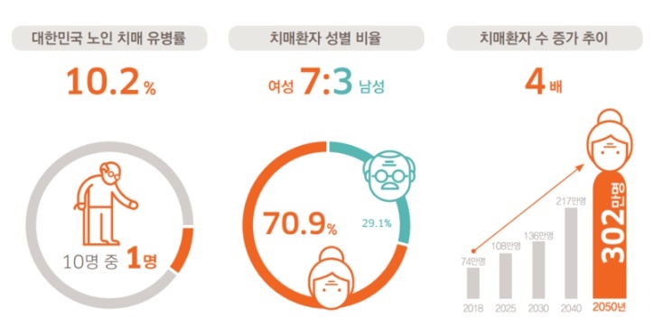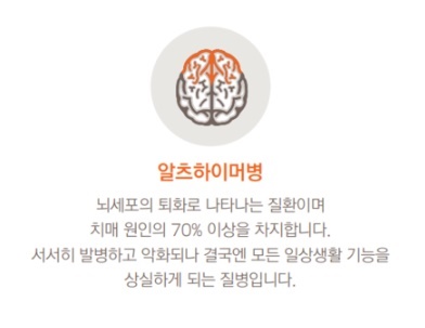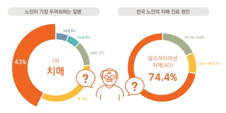 알츠하이머병은 치매의 한 유형으로, 기억력, 사고력, 판단력 및 학습 능력 등 정신 기능이 서서히 쇠퇴하는 장애를 의미합니다. 특히 알츠하이머성 치매(노인성 치매)는 전체 치매의 50~60%를 차지한다. 뇌조직을 손상시키는 '아밀로이드'라는 단백질이 뇌에 과도하게 쌓여서 생깁니다. 알츠하이머병은 남성들보다 여성들에게 더 영향을 미치는데 여성들의 수명이 남성들보다 더 길기 때문입니다. 고령자 인구의 비율이 증가할 수록 알츠하이머병에 걸린 사람들의 수는 크게 늘어날 것으로 예상됩니다. 알츠하이머병에는 알려진 치료법이 없어 미리 예방하는 것이 중요한데 최선의 방책은 효과적인 예방법을 실천하는 것입니다.