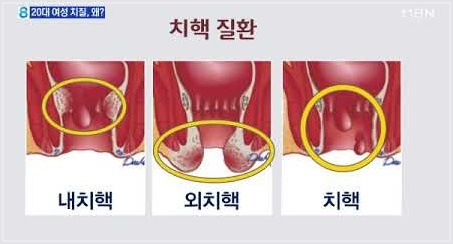 치핵은 치질의 70~80%를 차지하는 질환으로 항문 안쪽 점막 조직에 혹이 생기는 것을 말합니다 변이 나올 때 혹이 긁히면서 출혈이 생기는 경우가 많은데 치핵을 방치하면 나중에 자리에 앉지 못할 정도로 심한 통증이 생깁니다. 치핵의 주요 원인은 변비로 화장실에 장시간 앉아 있는것으로 굵고 딱딱한 변이 항문 밖으로 나올 때 괄약근 주변의 혈관들이 항문 밖으로 함께 빠져나오는 것입니다. 변비를 완화하려는 목적으로 변비약을 복용하면 설사가 잦아지면서 항문에 피가 몰려 치핵 증상이 악화될 수 있어 주의해야 합니다.