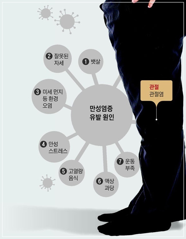 만성염증은 혈관을 시작으로 근육·심장 등 여기저기로 퍼져, 전신질환을 부르는데 만성염증의 원인을 확인해보겠습니다.