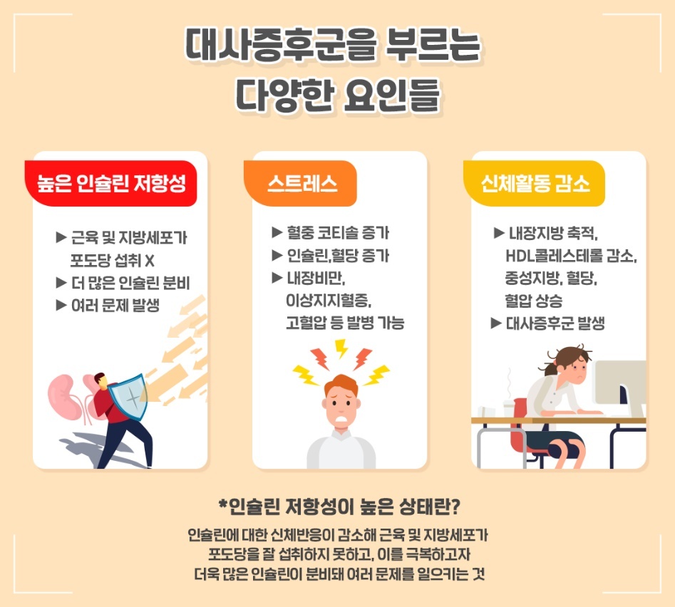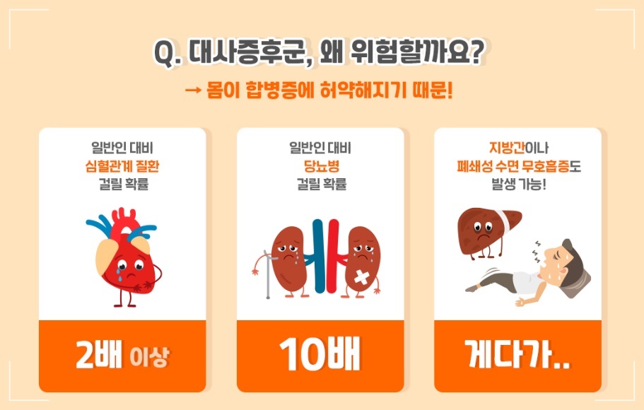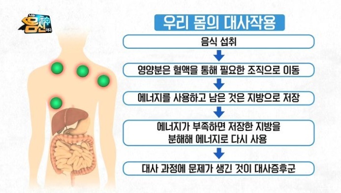 대사증후군은 몸이 순환되는 대사 과정에서 문제가 생기는 현상으로 현대인들의 식생활이 서구화되고 외식문화가 발달하면서 대사증후군 발병 연령대가 점점 낮아지고 있습니다.