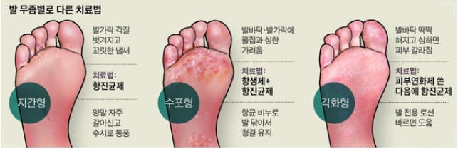 따라서 수포형은 항생제(세균을 죽이는 치료제)와 항진균제를 함께 쓰는 치료가 필요하며 세균 감염 위험을 줄이기 위해선 항균 비누 등으로 발을 닦는 게 좋습니다.