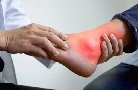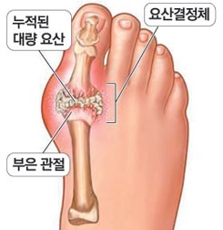 날카로운 요산 결정이 관절 주변에 쌓여 있기에 환자분은 매우 극심한 통증을 호소하게 됩니다.