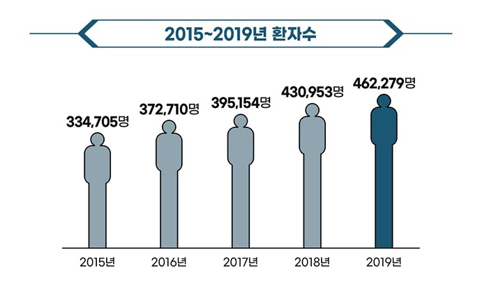 통풍은 평소에 고단백 음식을 과다 섭취하거나 과음하는 사람일수록 많이 발생합니다. 서구화된 식습관으로 인해서 통풍 환자분들은 꾸준히 증가 추세에 있습니다. 건강보험심사평가원의 통계자료에 따르면 2019년 통풍으로 진료를 받은 환자의 수는 46만 2279명입니다.