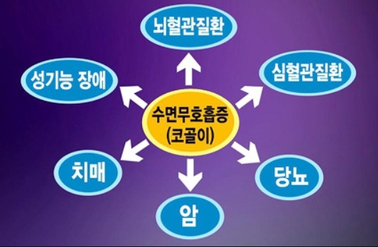 코골이를 하는 사람들은 수면 무호흡증을 동반하는 경우가 많은데 하룻밤 사이에 많게는 수백 번씩 호흡이 정지됩니다.