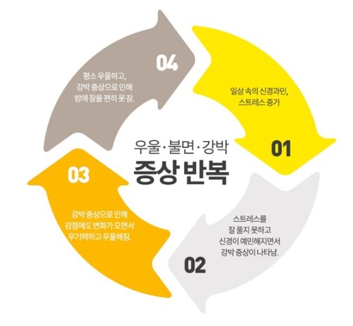 수면장애가 있는 사람은 불면증과 만성피로를 가지고 있는 사람이 많고, 기면증과 하지불안증후군을 겪는 사람도 있습니다. 불면증은 우울증이 동반되며, 만성피로 증후군은 번아웃증후군, 편두통, 무기력증이 나타나기도 합니다. 또한 수면장애의 대표적 증상인 기면증은 단순한 '졸림'과는 차이가 크며 순식간에 잠드는 것이 특징입니다. 수면장애는 여러 가지 개인적, 사회적 문제를 초래할 수 있으며 학습장애, 능률저하, 교통사고, 안전사고, 정서장애 등의 원인이 됩니다.