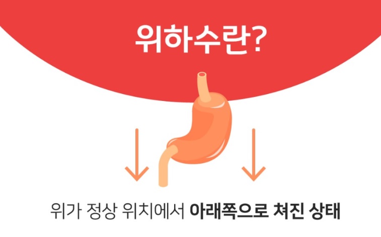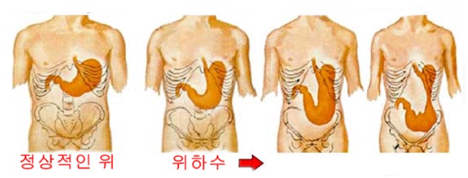 위하수증은 위가 정상인보다 아래로 쳐져 있는 위의 위치 이상 증세를 말하며, 대개 체격이 갸냘프고, 무력형인 사람에서 흔히 볼 수 있습니다. 한국 사람의 약 1/3정도가 이 증상을 가진 것으로 추정됩니다. 정상적인 위의 아래끝은 배꼽부터 위 또는 이보다 2~3cm아래에 있는데 위하수는 배꼽 부위아래로 쳐진 것을 말합니다.