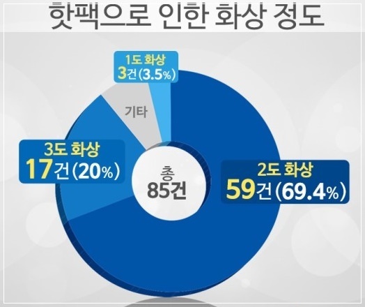온도가 오르는 것을 모르고 자칫 잘못하면 심각한 저온화상을 입을 수 있기 때문입니다. 저온화상은 2도 또는 3도 화상인 경우가 대부분으로 치료기간이 오래 걸리는 특성이 있습니다. 따라서 소비자가 경각심을 갖고 제품을 안전하게 쓸 수 있도록 제품의 주의·경고 표시가 중요합니다.