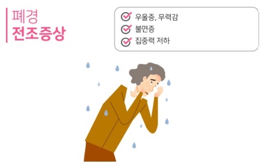 폐경은 일반적으로 50세 전후에 나타나는데, 1년간 생리가 없을 시 폐경으로 진단합니다. 40세 이전에 폐경이 되는 경우는 조기폐경으로 원인을 알고 치료해야 합니다. 폐경기 전조증상의 첫 번째는 짜증, 우울, 심한 감정기복, 불안감과 신경과민 증상으로 다양한 감정을 느끼는 일상생활에서 폐경기가 되면 극심한 스트레스로 인해 감정 변화가 생깁니다. 이유없이 짜증나고 우울하고 화가 나 자신의 감정을 컨트롤하기 힘들어지며 주변 사람들도 힘들어 질 수 있습니다.