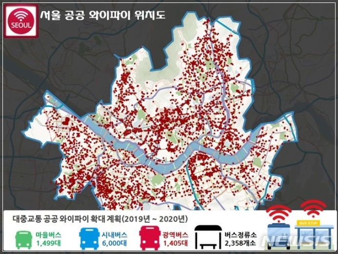 이미 경험한 사람들에 따르면 영상을 볼 수 있을 정도하고 합니다.이 무료 공공 와이파이는 마을버스 전 노선(235개 노선 1499대)과 시내버스 및 광역버스의 81%(총 7399대 중 6000대)에서 사용할 수 있습니다. 서울과 수도권에서는 하루 평균 약 700만명이 혜택을 받는 셈입니다. 이미 서울시는 종합사회복지관, 어르신 및 장애인 복지관, 청소년 쉼터 등 서울시내 348개 복지 관련 시설에공공 와이파이를 추가 설치했습니다.
