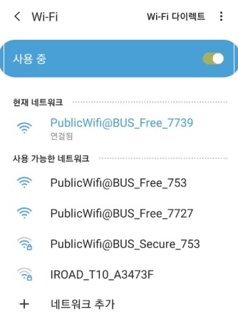 공공 와이파이를 사용할때는 귀찮더라도 보안접속을 하는것이 좋은데 보안접속은 식별자(SSID)에 secure 단어가 포함되 있습니다. 마을버스 공공와이파이 개방형은 PublicWiFi@Seoul,보안접속'PublicWiFiSecure@Seoul’이며시내버스공공와이파이는 개방형 PublicWiFi@Bus_Free_(노선번호),보안접속 PublicWiFi@Bus_Secure_(노선번호)입니다. 마을버스와 시내버스는 사용자 이름(ID)와 비밀번호(암호)가 다릅니다. 한번 설정해 두면 누구나 편하게 와이파이에 접속할 수 있습니다.