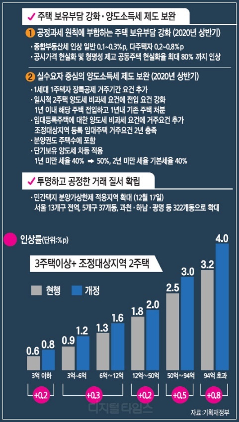 고가 주택에 대한 종합부동산세가 강화되고, 집값이 급등한 조정대상지역 다주택자가 내년 상반기까지 집을 팔면 양도소득세 중과세 부담이 줄어들게 됩니다. 정부가 발표한 '주택시장 안정화 방안'을 보면, 공시가격 9억 원 이상의 주택에 부과되는 종합부동산세가 1주택자에 대해서도 강화 됩니다.